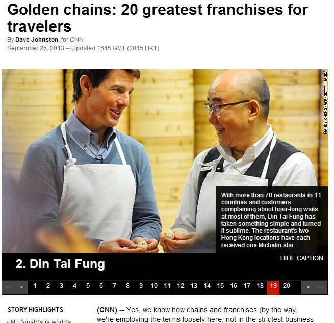 世界走向地球村,跨國連鎖企業不斷出現,美國有線電視新聞網(CNN)旅遊網站今天選出對遊客而言,全球最佳的連鎖商店或企業,台灣的鼎泰豐名列第2。