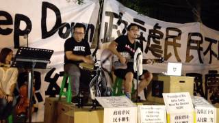 晚會熱烈地進行,一個一個講者輪流鋪陳著明天的抗議,不過,駐足停留的民眾卻不一定是支持者。晚間約8點40分,一名穿著運動服裝的中年男子經過,大聲對正在發言的學生指責,「你們抗議也要講是非吧?美國國安局監聽那麼多人,也沒看見誰要總統下台!」他也反對現場的白布條以”dictator”(獨裁者)的字眼形容馬英九,認為這是太過分的侮辱。