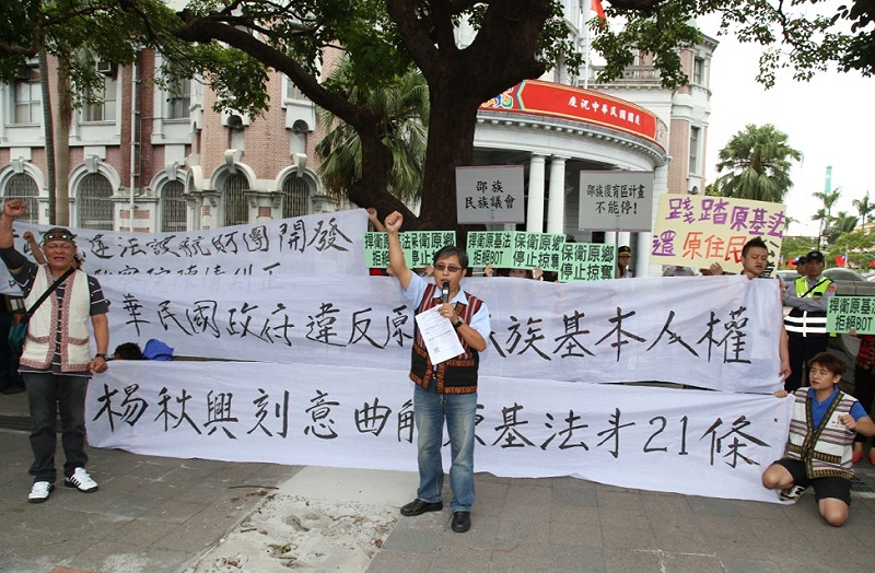 邵族民族議會議長毛隆昌表示,原住民族八千年的歷史不僅比中國人五千年還長,也不是中華民族,行政院卻為了一點錢,就要跟中國一起剝奪原住民生存權益,今天邵族來到監察院就是要糾正這個不要臉的行政院。