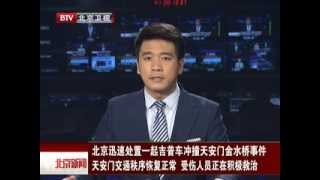 隸屬中共北京市委的千龍網今(28)日晚上表示,北京天安門城樓前吉普車衝撞起火事件目前已造成5死38傷,中共中央已要求「迅速查明真相,採取有力措施確保首都安全穩定」,中國外交部發言人華春瑩則表示,具體情況仍待調查。案發後,大批警車在天安門城樓前警戒,現場充斥肅殺氣氛,法新社則報導,有2名法新社記者試圖在天安門進行採訪時,遭到扣留。而中國官媒在報導該則新聞時,都採冷處理的方式,以北京衛視為例,就由主播唸乾稿播出,毫無現場畫面。