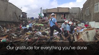 海燕颱風重創菲律賓即將屆滿3個月,各國援助在這段期間不斷湧入,讓菲律賓人感念在心。菲律賓愛國歌手巴瑞德斯(Jim Paredes)便特別寫了一首感恩曲,感謝國際社會對海燕災區伸出援手,除了用各國語言唱出謝謝,官方MV裡更列出了逾60個伸援國名,包括台灣。