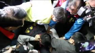 影片分為上、下兩集,為藍綠兩黨於立法院審議服貿協議現場發生的扭打衝突,可見張慶忠被壓制在地上,其他藍綠立委則互相拉扯,場面一片混亂。(林雨佑/攝)