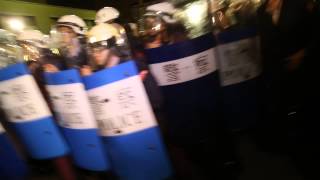 雙方發生極為嚴重的衝突,不時還有人被拖進去,被4、5個警察圍毆,經過許久之後,才又被拖出來,不論是學生還是70歲的老翁都一樣。