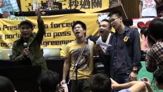 318太陽花學運至今(28)日已進入第11天,知名樂團滅火器主唱楊大正為聲援反黑箱服貿學生與民眾,也特別創作新歌《島嶼天光》,並前往立院議場現場與在場學生一同合唱。