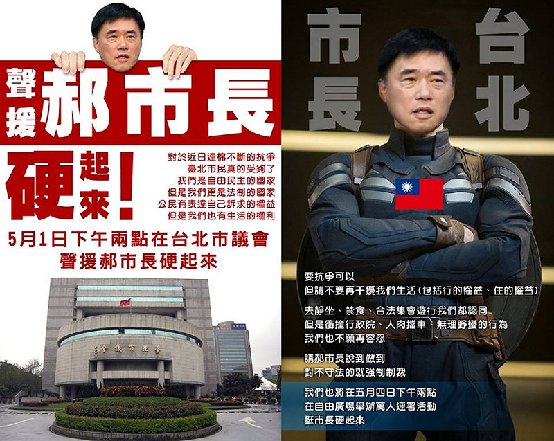 前天有上百反核群眾突然癱瘓忠孝東路1個多小時,昨(30)天又有網友發起10萬人佔領捷運行動,台北市長郝龍斌強硬表示,將對這些行為採取強勢而有效的作爲。白色正義社會聯盟昨天下午於粉絲頁上po文,肯定郝的作為,還號召民眾,於今日下午2時,到北市議會支持郝市長硬起來,聯盟總召比特表示目前確定會有約80人參加。