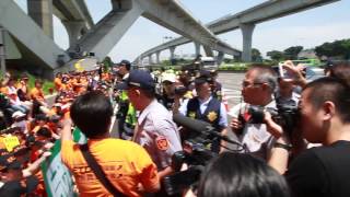 面對數百名收費員,警方也出動上百警力、設置好路障維持交通動線,並有數台警車封鎖住匝道,警察一排站在收費員和匝道中間,防止任何突發狀況。