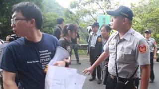 影片即為26日當天下午,黑島青成員以鐵鍊綁身封路,居民騎機車硬闖的情形。
