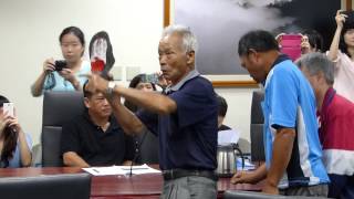 竹北老農謝見祥則以客語激動表示,竹北有好田好米,政府卻像強盜一樣說搶就搶,說到激動處,謝見祥舉起腳下拖鞋,頻頻敲桌,指責政府罔顧憲法對人民生存權和財產權的保障,而這種土匪政府,「人民一定會跟他拚到底」。台灣農村陣線理事長徐世榮則語帶哽咽地數次重複,「土地是農民的生命」,呼籲都委會不要再幫政府背書,「台灣需要改變」。
