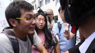 郭雋受訪同時,陳彥甫一行人已經快走到校門口,陳彥甫出了校門後隨即戴上安全帽要騎車離去,卻還是被鍾孟軒直接阻擋在前面,校警見狀也上前處理,但雙方仍是你一言我一語。