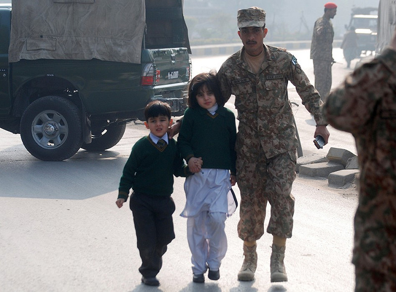 塔利班武裝份子昨日闖入巴基斯坦白夏瓦(Peshawar)地區一所軍隊公立學校開火,造成大量傷亡,消息震驚國際社會。塔利班組織發言人何拉薩尼指出,這起攻擊事件是回應巴基斯坦軍方在阿富汗邊境的武力鎮壓,當時有數百名塔利班武裝人員遭到擊斃。