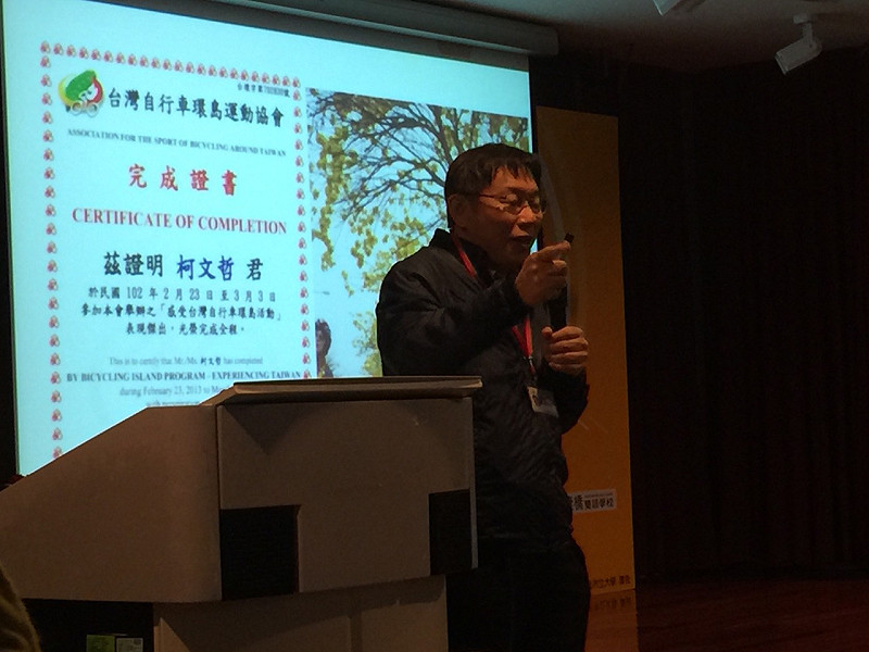 柯文哲下午以「臺北巿政,百日新政」為題,和台北市立大學的學生分享台北市政革新的挑戰與機會。演講結束後,引言人張瑞昌和柯文哲對談時,聊到柯文哲的失言風波,柯文哲說,他以前很少看過陽光,因為在台大醫院時,天還沒亮就進醫院工作,下班時,天已經黑了,所以他跟這個社會是脫節的。