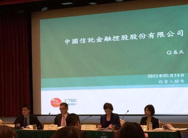 中信金14日舉行法人說明會,會中公布第1季合併稅後盈餘97.74億元,股東權益報酬率(ROE)為16.69%,每股稅後盈餘(EPS)0.64元。若排除中信人壽,集團淨營業收入較去年同期成長25.4%