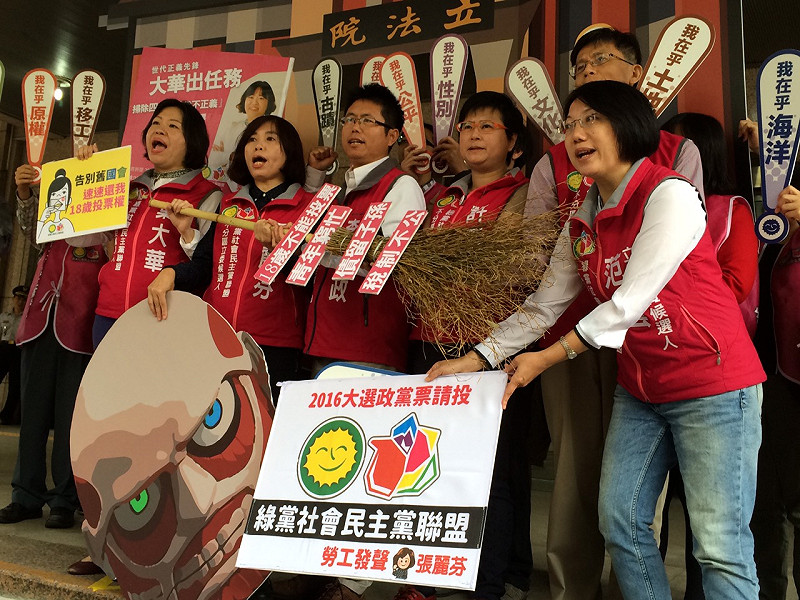 綠黨社民黨聯盟不分區立委參選人25日全員赴中選會進行登記。參選人拆解2公尺的「金權政治巨人」,象徵打破金權政治。綠社盟召集人范雲說:「我們的不分區名單是最好的名單!」綠社盟也說,對於綠黨桃園市議員王浩宇在23日突然領表一事,事前並不知情。綠黨人士則說,王浩宇一直以來都反對綠黨與社民黨結盟,領表一事就是做出「綠黨要自己選」的象徵動作。