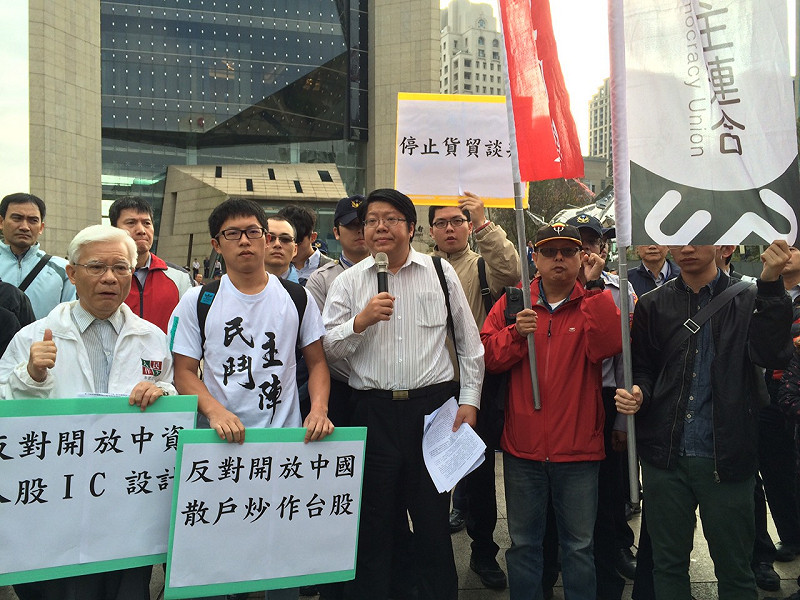 中國海協會長陳德銘2日上午9點到中國機電產品進出口商會台北辦事處,和在台投資的中國企業座談。律師賴中強帶領經濟民主連合、台教會等團體到場外抗議,遭警力以「不能在管制區集會遊行」為由,2次舉牌警告,要求賴等人移至警方劃設的「陳情區」抗議,引發抗議人士不滿。賴中強開完記者會準備離開時,自由台灣黨主席蔡丁貴也現身並帶頭衝場,與警方數度推擠。