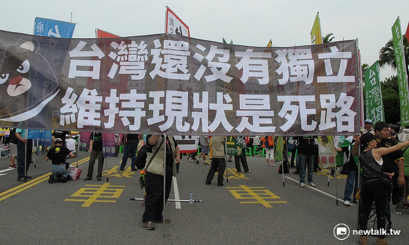 民進黨前立委魏耀全20日率領獨派群眾呼籲制憲建國。 圖:林朝億/攝