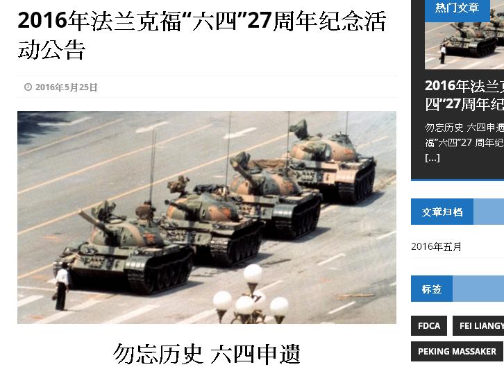 此外,中國駐法蘭克福總領事館前,4日上場的則是「六四」紀念活動,將由羅蘭德•庫訥(Roland Kühne)牧師為「六四」死難者做追思禱告;主辦單位也將向中國駐法蘭克福總領館遞交「釋放中國政治犯」呼籲信。目前預計有歐洲各民運團體,包括藏族、蒙族、維吾爾族的團體將出席。法蘭克福市中心羅馬廣場,也同步舉辦六四圖片展與公眾演講活動。