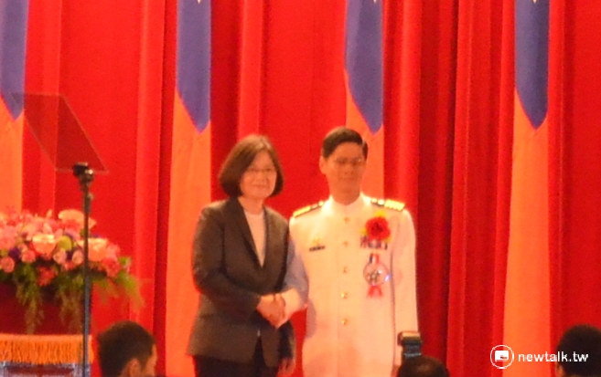 蔡英文也在致詞中特別「點名」獲得表揚的2位小兵,一名是在台南震災中進入維冠大樓救災的564旅砲兵營上兵莊鎮豪;另一名則是58砲指部2營的上兵游雅茜,蔡英文說,同屬女性,她要特別肯定游雅茜的表現,因為她用實力證明女性在軍隊裡面一樣很傑出。