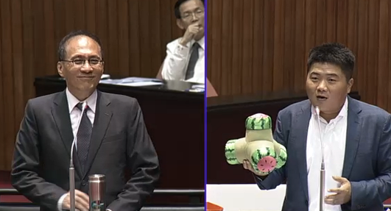 立法院18日舉行院會,針對行政院長林全進行最後一天施政總質詢,國民黨立委花招百出,顏寬恆先是送給林全一只「消坡塊」抱枕,期盼林全能像消坡塊一樣守護國內產業,輪到徐榛蔚質詢時,則是送給林全一箱落石,要求林全收回坍方不斷、由地方養護的花64線鄉道。