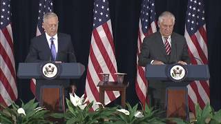 美國國務卿提勒森(Rex Tillerson)與國防部長馬提斯(Jim Mattis),21日與中國國務委員楊潔篪和解放軍總參謀長房峰輝,於華府展開川普上任以來首度舉行的「美中外交安全對話」(D&SD)。會談結束後,提勒森與馬提斯召開聯席記者會,指出此次的對南內容主要側重在朝鮮、南海和人權議題上。