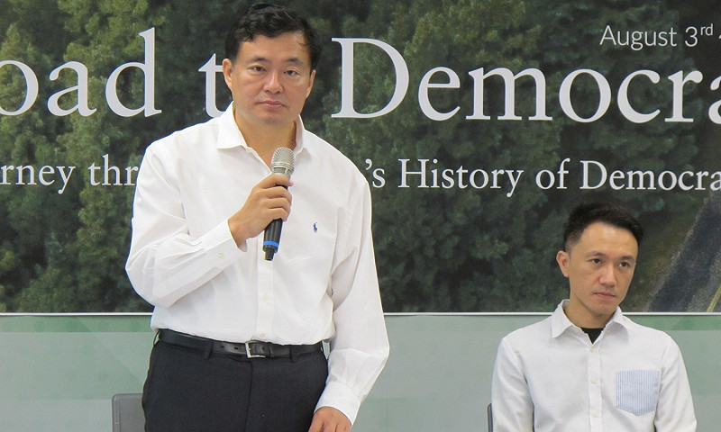 民視台灣學堂執行長楊宗澧3日出席「2017年外籍留學生夏令營【Road To Democracy】」行前記者會。 圖:林朝億/攝影