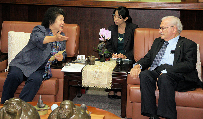 世界運動總會 (IWGA) 前主席 Ron Froehlich (朗弗契) 及現任執行長 Achim Gossow (阿罕高索) 今(21) 日專程到高雄拜會市長陳菊, 並與前KOC常務董事劉世芳立委及執行長許釗涓等人敘舊,場面熱絡溫馨。