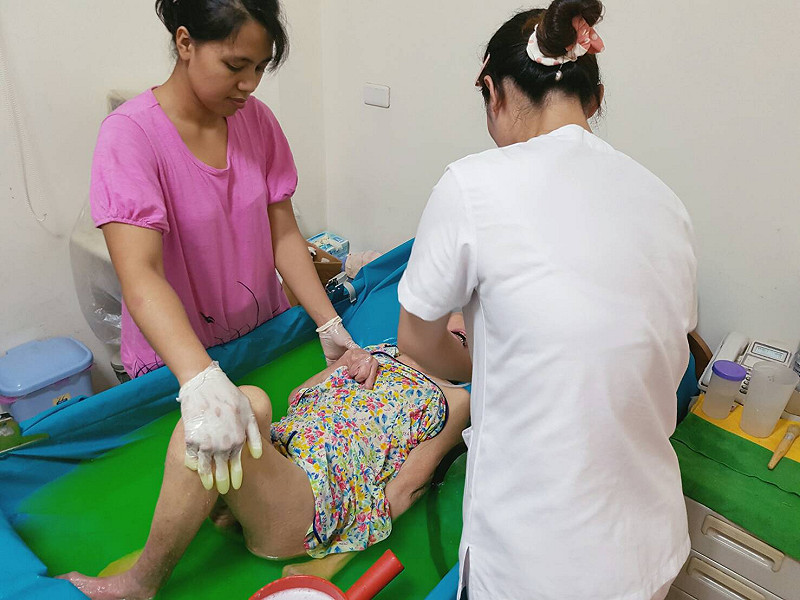 「阿公,阮來洗身軀喔!」到宅義工小珍一進門就熱情叫喚,臥床的阿公也眨眨眼給了回應,連同到宅護士,開始一連串的泡澡服務。小珍為創世台南院的義工,原本就會幫忙創世至部分店家回收發票箱內的發票,有次見到宅護士提著洗澡用具回到院內,好奇一問才知道創世除了安養植物人,還提供到宅原床泡澡服務,小珍覺得看到植物人泡澡後舒爽的樣子,能獲得滿滿的快樂與成就感,從此加入到宅義工行列,每次外出到宅都熱情滿滿。