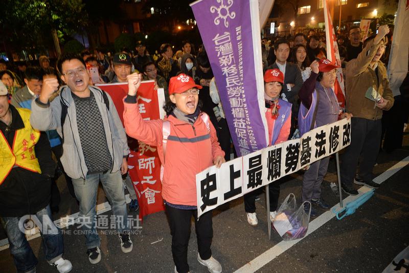 立法院社會福利及衛生環境委員會、經濟委員會今天聯席審查攸關一例一休的勞動基準法部分條文修正草案。勞工團體不滿修法,上午起就號召上百名勞團成員到立法院前抗議,一整天下來跟警方爆發3波衝突,甚至有3名勞工成員成功翻進立法院。