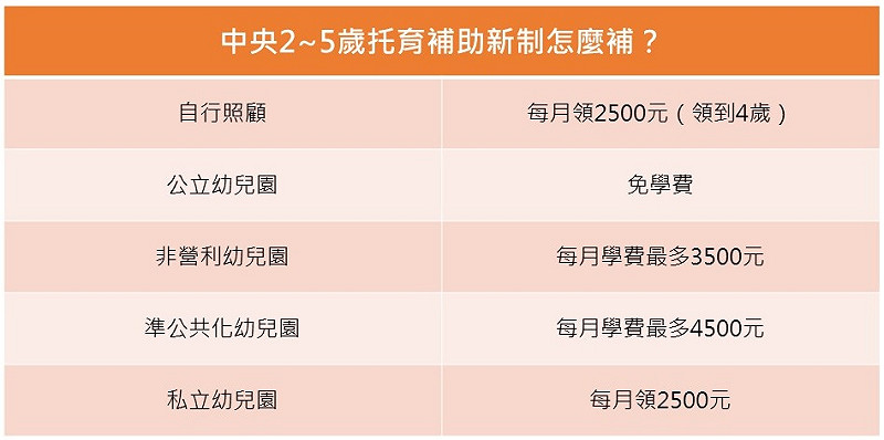 四、送托一般私幼:就是照著育兒津貼的發放規則領2500元,生到第三胎可多領1000。