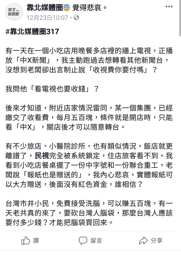文/愛河水一點都不甘(反媒體壟斷運動參與者)