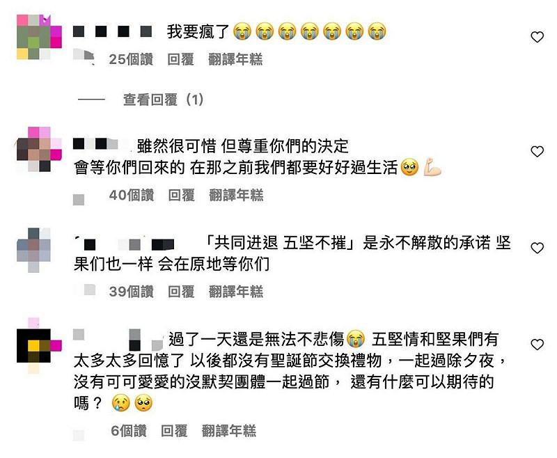 五堅情發出聲明,表示「我們始終相信,當團員遇到困難時,彼此都會選擇共同進退」,因此五堅情將暫時休團。 圖:翻攝自五堅情IG