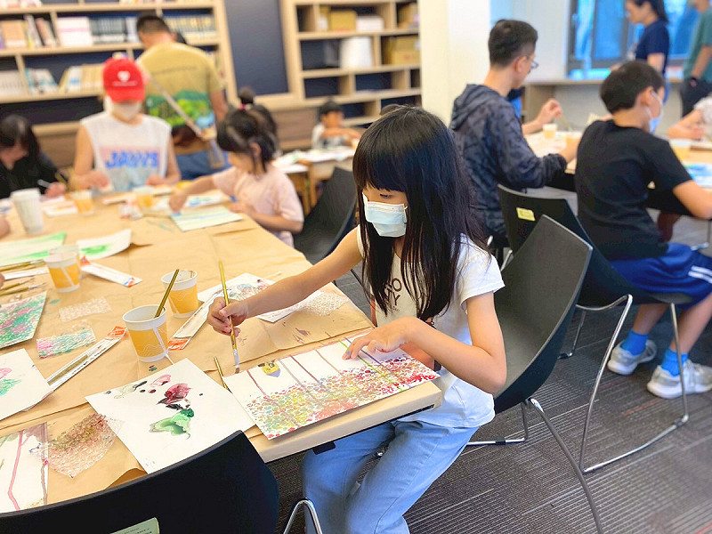 圖為上一季《看見兒童力!改變,讓世界更美麗!》兒童創作工作坊創作過程,利用壓克力顏料、氣泡布和棉花棒,繪製出風景各異、獨一無二的「流動森林」作品。 圖:國家人權博物館提供