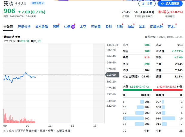 公告 9 月營收為 23.40 億元( 24.56% MoM, 64.35% YoY),營收達成率 103.7% 優於預期。雙鴻水冷板產品於 GB300 世代率先取得供應鏈認證,並切入相關供應鏈,於 9 月開始出貨。4Q25預期雙鴻供應 GB300 水冷產品持續放大,因氣冷轉向水冷產值倍數提升,有望帶動 25/26 年營運持續走高,維持買進建議。