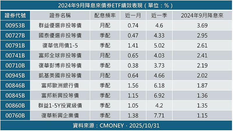 群益優選非投等債ETF經理人李忠泰指出,聯準會雖然降息,但從鮑爾會後聲明可知,12月降息仍有變數,但在美中談判報佳音,加上企業財報多正向,讓市場投資氣氛仍偏正向。歷史經驗顯示,在經濟持堅、利率緩降時,具備高票息、低存續優勢的非投等債期望報酬較佳。目前非投等債發行企業體質佳、信用風險偏低,殖利率又具吸引力,後市表現值得期待。投資人可選擇聚焦成熟國家、經過信用因子篩選條件力求降低違約疑慮的非投等債ETF,以強化投組穩健性,並兼顧收益需求。
