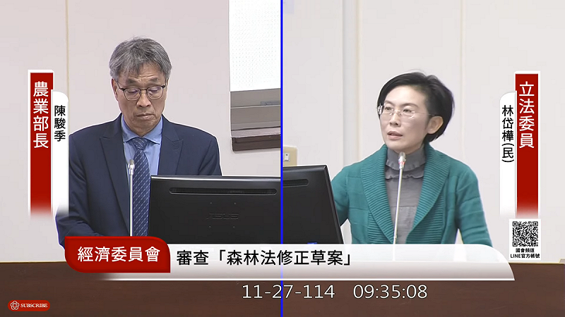 林岱樺強調,總統賴清德已重啟公地放領,協助1976年前合法承租並持續農用者承購土地,同樣精神也應納入國有林地的歷史住民。「在161萬公頃國有林地裡,不只有樹,也有一代又一代住在那裡的人。同一個家庭,在地籍上可以被叫做占用戶,在國家的記憶裡,應該永遠叫做國民。」她表示,修法目的並非犧牲森林保育,而是維持保育前提下,承認山區居民的法律地位,讓台灣的森林政策既能保護山也能保護人。