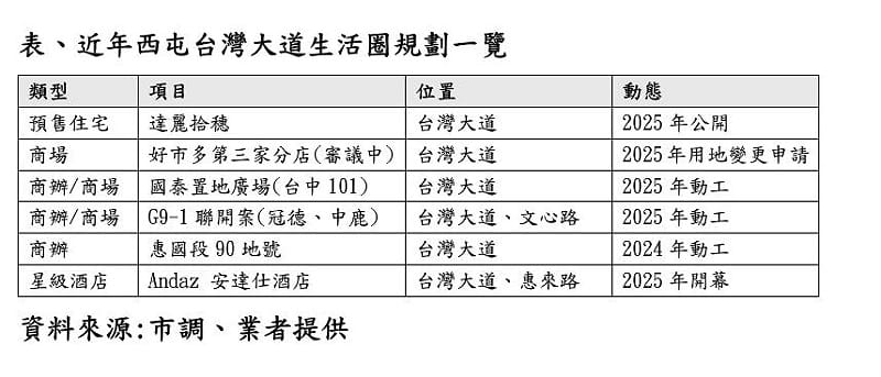 據房市觀察人士指出,西屯生活圈的開發案,住宅市場部分,以達麗建設在台灣大道軸線推出的新案「達麗拾穗」最受矚目,基地為區域少見的三面臨路角地,具備步行即可抵達未來捷運藍綠線交會站點「市政府站」的交通優勢,可串連七期生活圈及多項商業設施。周邊新光三越、台中大遠百與台中101預定地等量體齊聚,使該區生活機能呈現相對成熟度。