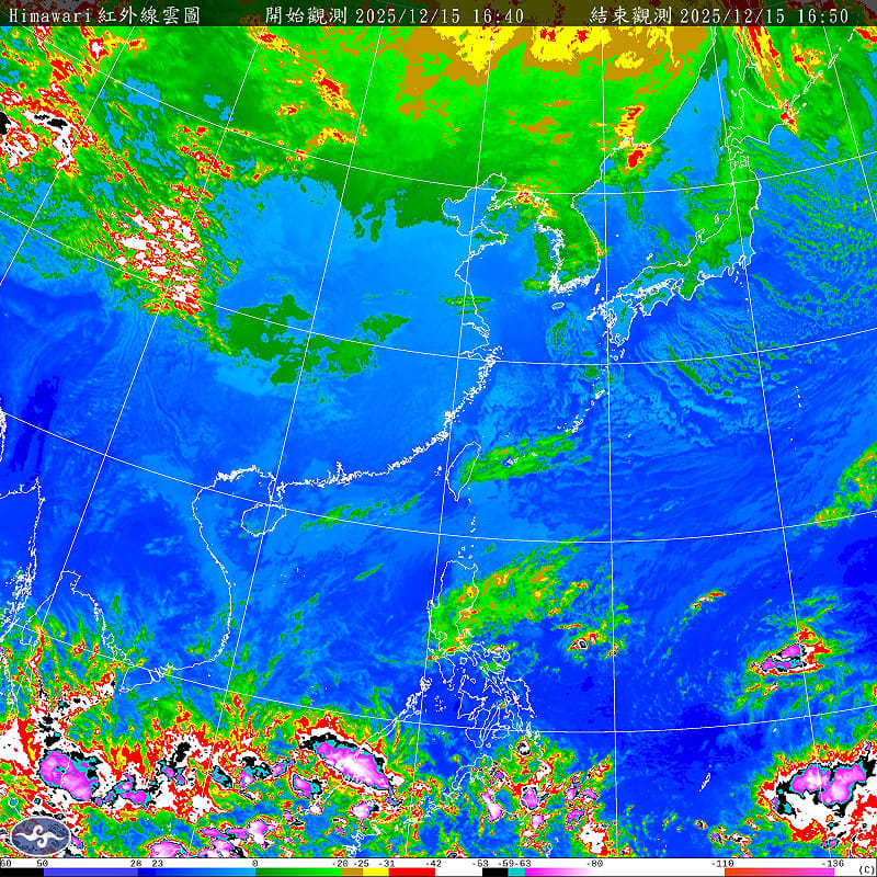 雨勢的部分,目前台灣北邊海面還有冷空氣造成雲系,東半部雲量偏多,西半部晴朗可見陽光,清晨輻射冷卻較明顯。今天清晨6時高雄以北、東北部低溫12至15度,竹苗局部地區低於10度,離島也在10至11度,最低溫出現在新竹關西7度,苗栗公館、頭屋也只有8.5度。