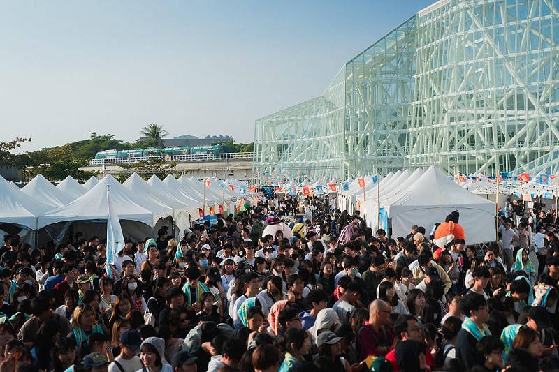 高雄流行音樂中心攜手韓國觀光公社12月13、14日在高流海風廣場舉辦《2025 下酒祭:音樂、啤酒、下酒菜 feat.韓國 한국》,活動兩天吸引超過12萬人次,現場集結台、韓超過50個美食攤位,除了重現韓劇經典布帳馬車場景,更有台韓11組人氣歌手與樂團接力演出,從音樂、美食、交友全方位深度文化交流,也為台韓友好加溫。韓國啦啦隊女神安芝儇、南珉貞親自示範家鄉料理,上百名粉絲大排長龍品嚐女神手藝,成為《下酒祭》餐飲文化交流最美「嬌點」。