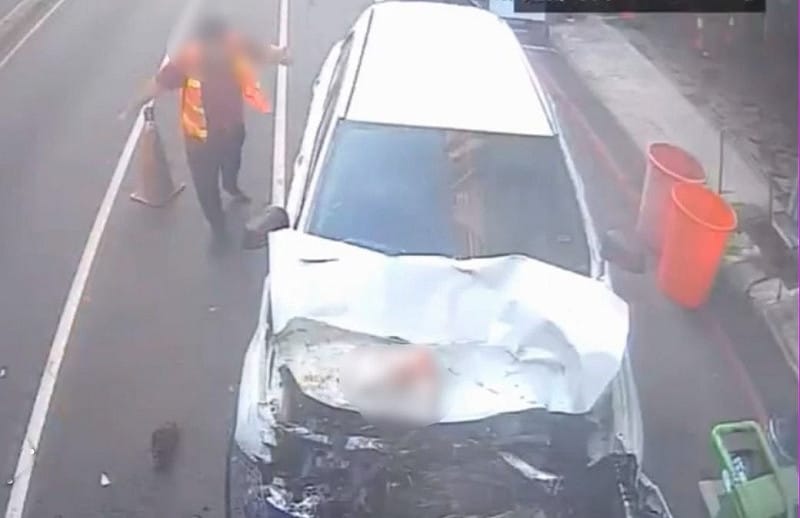 23歲陳姓女清潔員在垃圾車尾值勤遭後方車輛追撞慘死。 圖:翻攝畫面