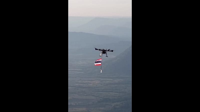 泰國與柬埔寨近期又於邊境地區爆發衝突,泰國方面甚至占領了柬埔寨軍方的陣地後,並升起懸掛國旗的無人機試圖宣示主權。 圖:擷取自 @Fangliusy X 分享影片