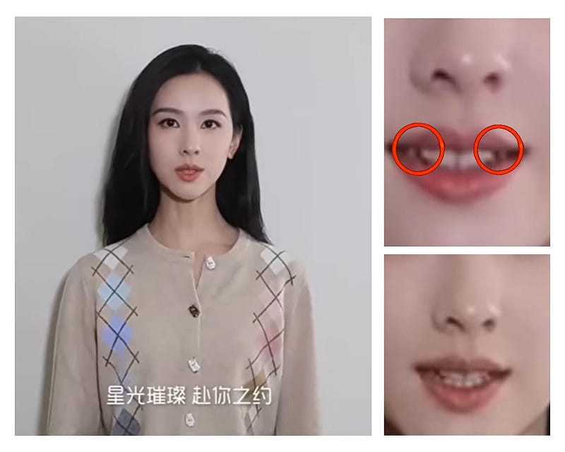 YouTube頻道「光之子-朧兒」近日發布分析影片指出,將陳都靈的星光大賞宣傳片放慢檢視後,畫面中疑似出現上排牙齒異常的狀況,甚至看起來像是前排牙齒消失,相關畫面迅速在網路上引發熱議。