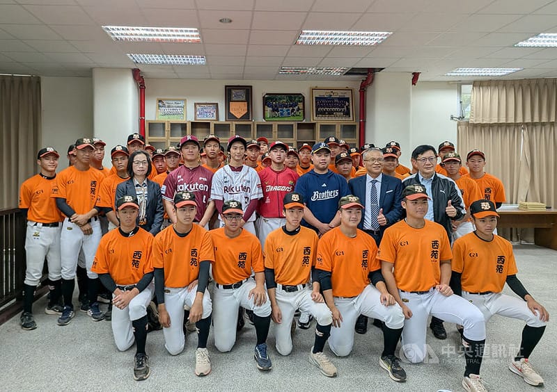 捐贈活動今天在台中櫻花棒球場舉辦,教育部次長張廖萬堅、西苑高中校長劉洲溶、西苑棒球發展協會理事長姚玉璿、西苑棒球隊總教練黃武雄等人皆出席。