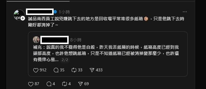 該名員工也直言,自己並不認為張文是畏罪自殺,「也許他以為下面還有紙箱,有僥倖心態,結果失算。」相關說法引發網友熱議,也讓案件動機增添變數。