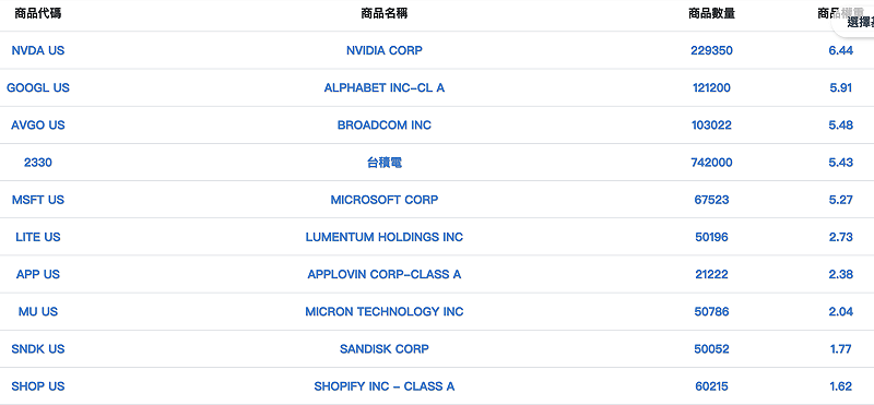 作為國內首檔純聚焦 AI 主題的主動式ETF,00990A 從多元化角度精選全球具 AI 營收潛力的成長企業,結合主動追求 AI 概念股超額報酬,及ETF交易便利優勢,助投資人積極參與 AI 新經濟成長機會。據投信官網的申購買回清單揭露,00990A 最新成分股數約 54 檔,美股持股數佔比 42 檔(54.06%)前兩大成分股分別為輝達(NVDA)跟谷歌母公司 Alphabet(GOOGL);台股方面也涵蓋台積電(2330)、台達電(2308)、台光電(2838)、奇鋐(3017)等 4 檔(8.63%);日韓股市韓國則共有 8 檔(0.95%)。