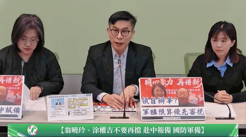 民進黨立法院黨團今日召開「翁曉玲、涂權吉 不要再擋 赴中報備 國防軍備」記者會。