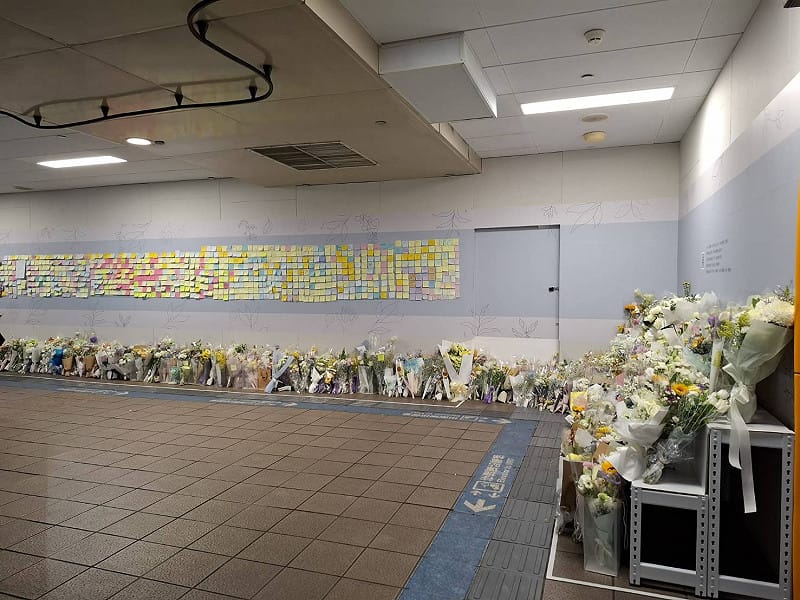 從北捷提供的照片來看,目前牆面已貼滿密密麻麻的便利貼,地上也放滿花束,不少人已前往表達對這個余家昶的感謝,「余大哥,謝謝你的勇敢,願安息」、「余英雄,謝謝你的義舉,保護了這麼多人,我們永遠會記得你的英勇事蹟」、「果然不知道怎麼說,希望你在天堂過得開心」、「祝余大哥在天堂的第一個耶誕節快樂」。