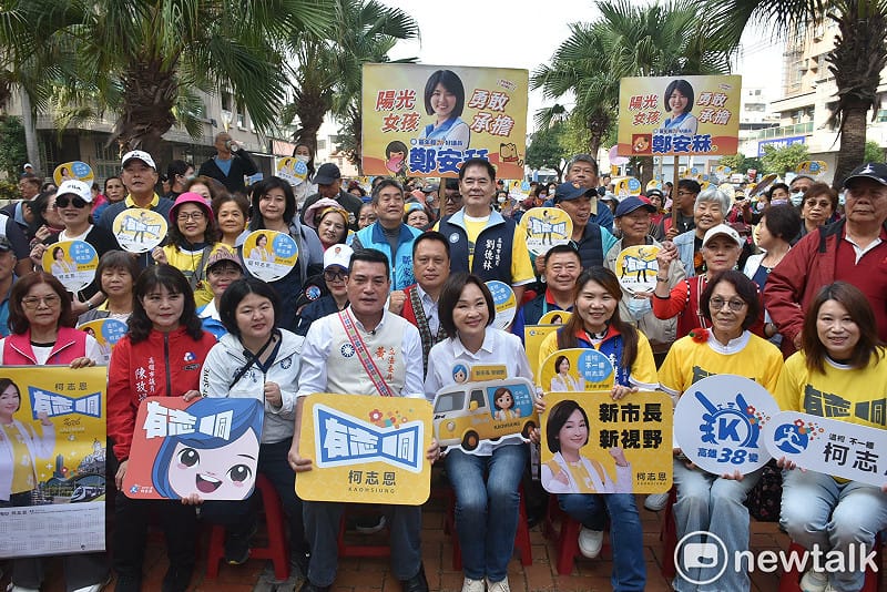 柯志恩(中)帶頭高喊「九合一大選全壘打」。 圖:孫家銘/攝