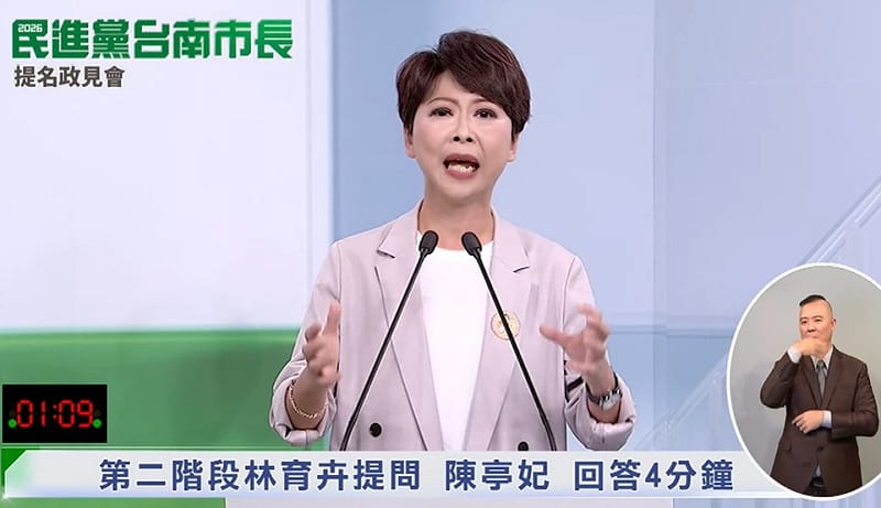 2026年台南市長選戰民進黨內初選激烈,因此,今晚(27日)舉行電視政見會期間,在媒體提問階段,問及兩位參選人立委陳亭妃、林俊憲,若初選落敗,如何支持勝出的對手?陳亭妃強調,她現在的所有民調都領先,這對她來說不是問題。林俊憲則說,他早就公開說過,他會接受初選結果。