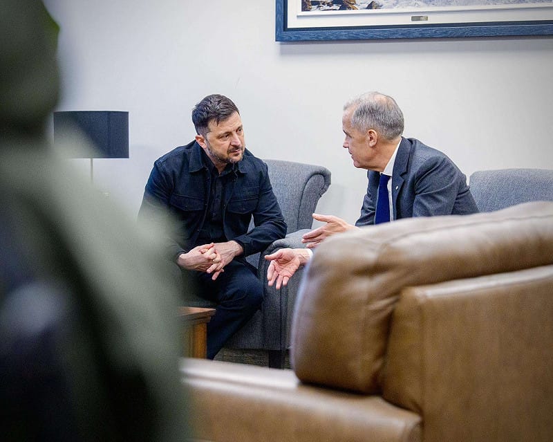 法新社報導,澤倫斯基(Volodymyr Zelenskyy)在前往美國佛羅里達州與川普見面之前,途中先在加拿大停留,與加國總理卡尼(Mark Carney)會面。