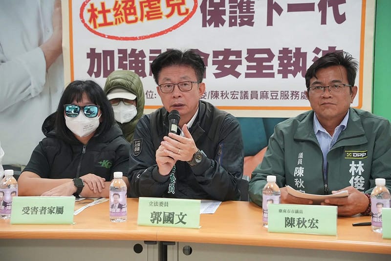 對此,郭國文與台南市議員陳秋宏今日與受害家屬共同召開記者會,要求相關單位正視托育安全漏洞。檢警目前已介入調查,法院也認定兩名涉案保母有串供與滅證之虞,裁定羈押禁見,但郭國文直言,司法處置無法抹去家長心中長期的創傷。