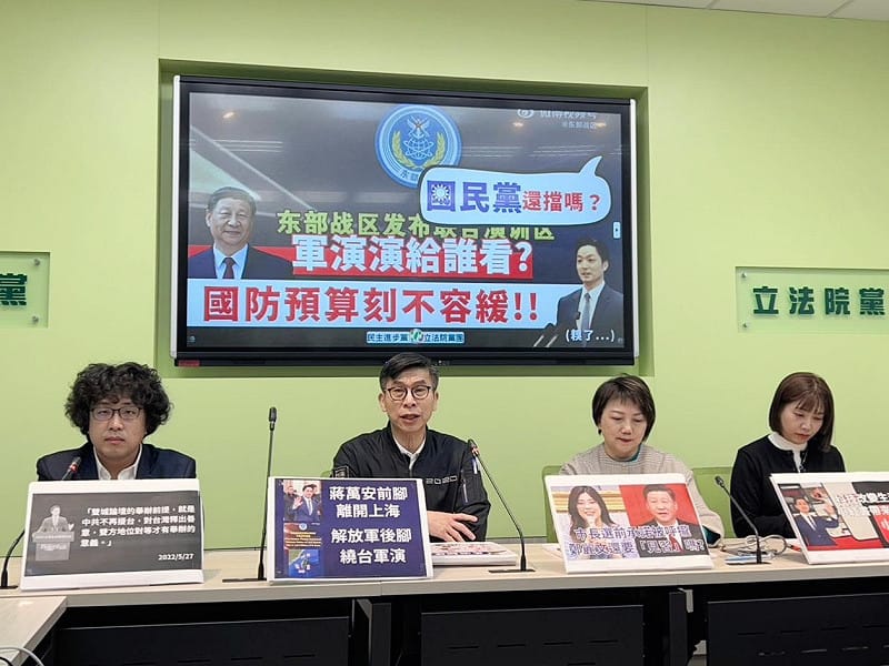 中共解放軍近日再度宣布於台灣周邊實施軍事演習,引發社會高度關注。民進黨立法院黨團今(29)日召開記者會指出,中共選在台北市長蔣萬安結束上海雙城論壇行程後隨即軍演,時機高度敏感,質疑國民黨一邊高談交流、一邊卻換來軍事恫嚇,痛批藍營對國家安全視若無睹,甚至持續阻擋攸關台灣防衛的國防預算審查。